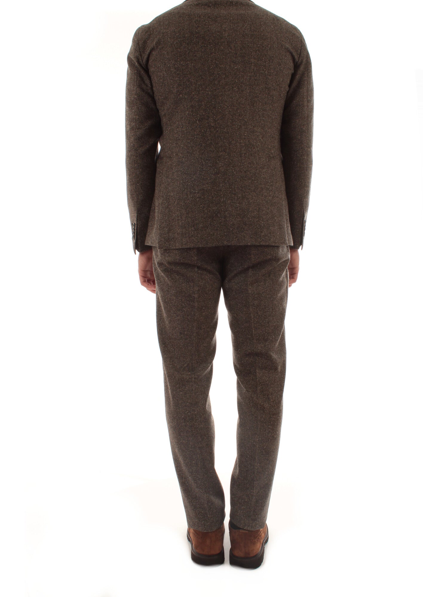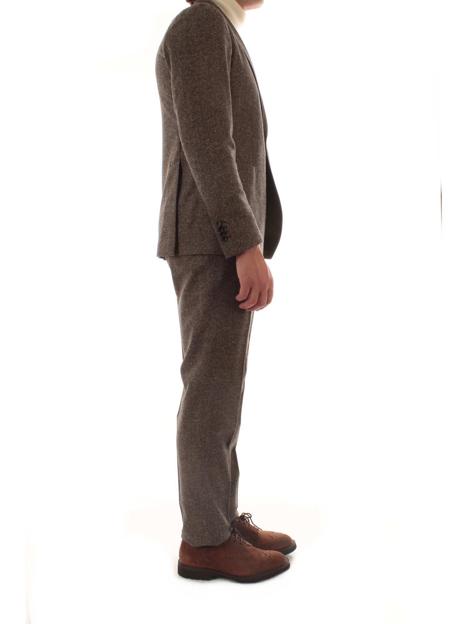 Abito monopetto in tessuto melange. Due tasche a toppa e una a filo. Spacchi laterali. Pantalone ventre piatto senza pence. Altezza modello: 185 cm. Taglia indossata: 50. 71% lana, 17% poliammide, 11% seta, 1% elastan